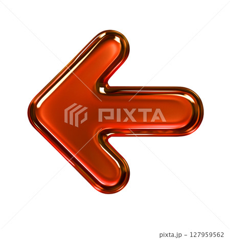 光沢感のある赤の左向き矢印アイコン、立体的にデザインされた左矢印、ガラス風の赤い左向き記号
