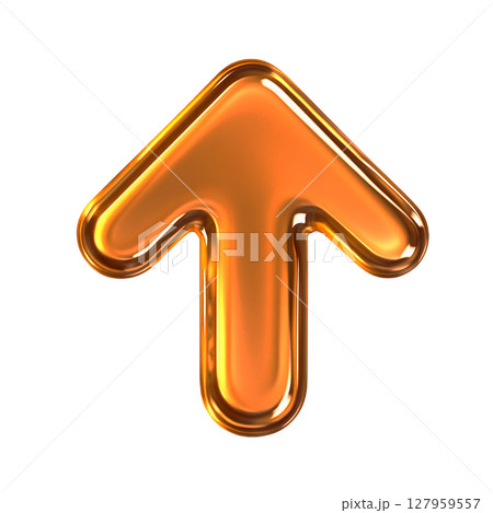 光沢感のあるオレンジの上向き矢印アイコン、立体的にデザインされた上矢印、ガラス風のオレンジの上向き記