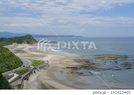 秋田県/ 入道埼灯台(入道崎灯台)付近の海岸線 日本の灯台50選