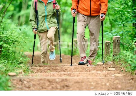 トレッキング姿の男女