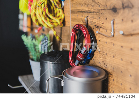 登山道具カラビナ 壁掛け収納イメージ素材