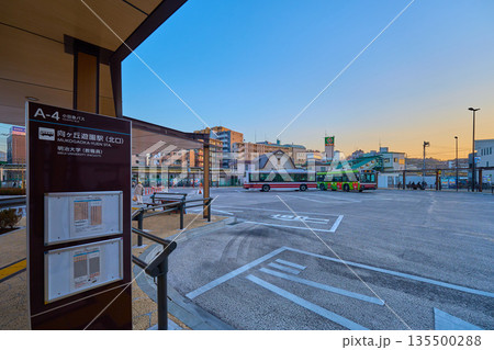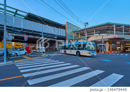 神奈川県川崎市多摩区 向ヶ丘遊園駅の北口をバス停ロータリーから見る
