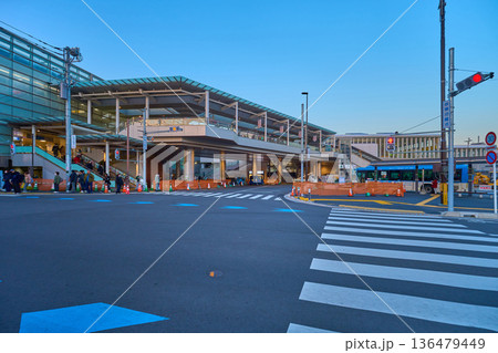 神奈川県川崎市多摩区登戸の駅前交差点から登戸駅中央口方面を見る