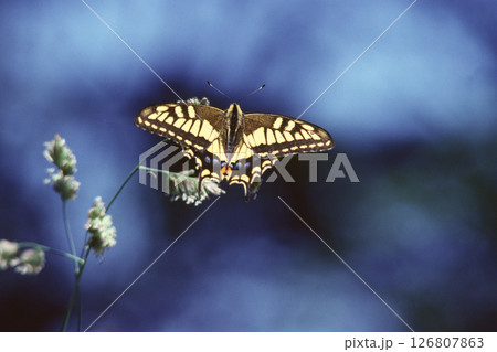 森の木漏れ日の中のキアゲハ