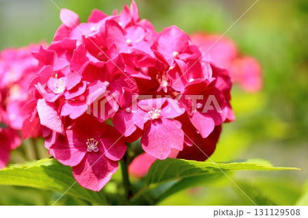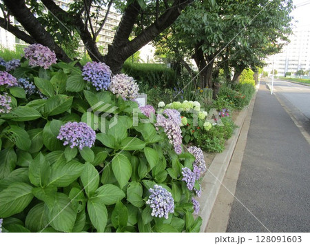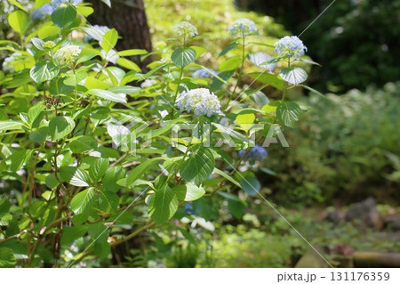 こじま花の会花畑の紫色と濃い紫色紫陽花