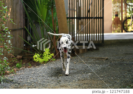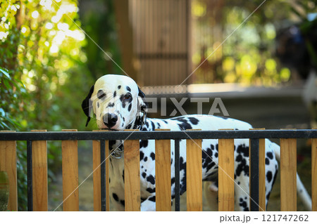 Dalmatian dog in the garden, beautiful moment