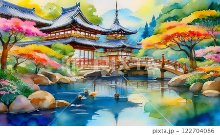 Explore the serene beauty of a tranquil garden bursting with blooming flowers and lush greenery in springtime wonder. Generative AI