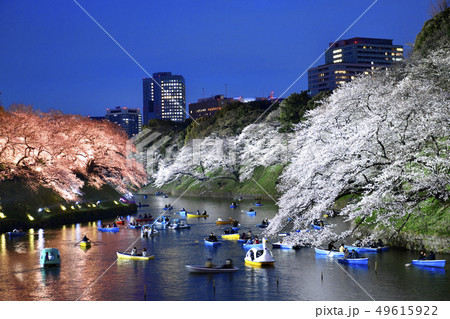 日本の東京都市景観 千鳥ヶ淵・平成最後の桜を望む(ボートで花見)・夜景