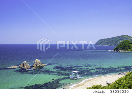 福岡県 糸島市 二見ヶ浦の美しい海と白い鳥居と夫婦岩