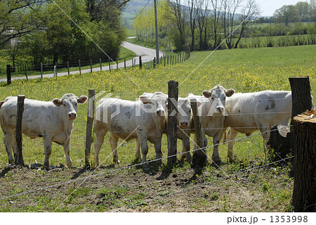 フランス、ブルゴーニュ地方の牧場の白い牛の群れ