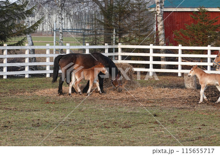 馬の親子 ばんえい牧場十勝(北海道帯広市)