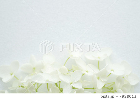 グレー背景に白いアジサイの花