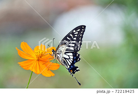 キバナコスモスにとまるナミアゲハ