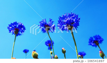 ヤグルマギクと青空の風景