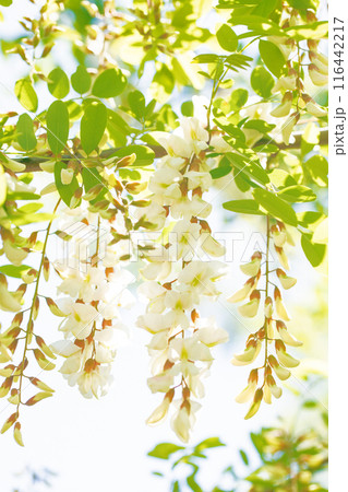 家の周りの草花 四季の色々 河原の偽アカシヤの木々が美しい白い房状の花でおおわれています
