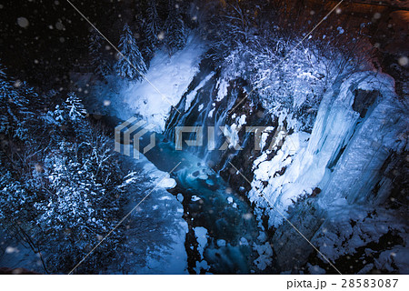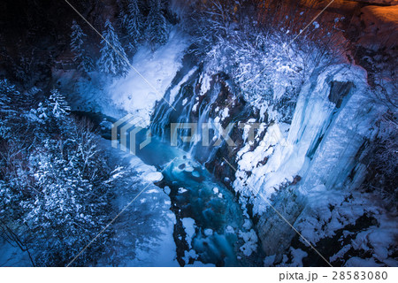 白ひげの滝 北海道,美瑛,白銀温泉 / 冬季間ライトアップ