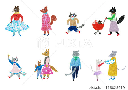 Wild forest animals silhouettes. Bear fox wolf hare owl eagle deer mouse gopher hedgehog squirell marten. Woodland mammals. Wild life elements. Isolated vector clipart collection