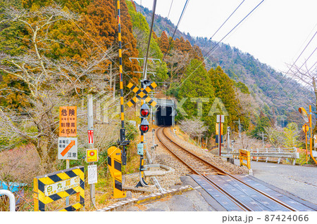 東京奥多摩 鳩ノ巣渓谷 青梅線無人駅「鳩ノ巣駅」に到着する電車 トンネルからすぐ駅ホーム