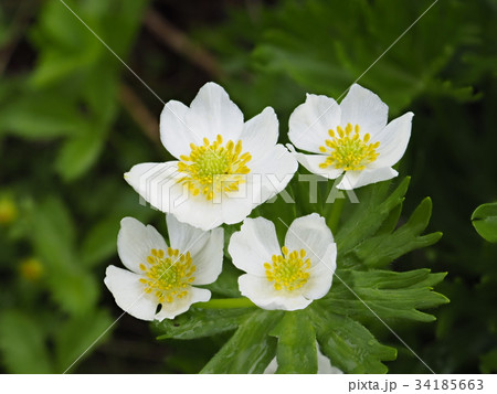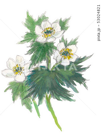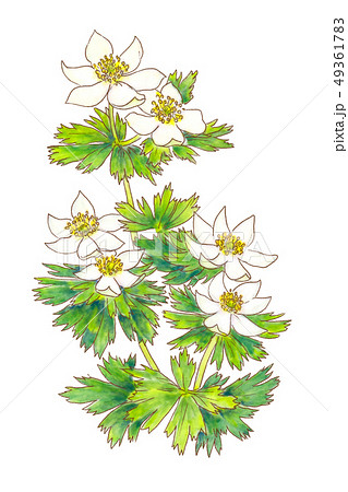 ハクサンイチゲの花と葉の全体/キンポウゲ科・高山植物
