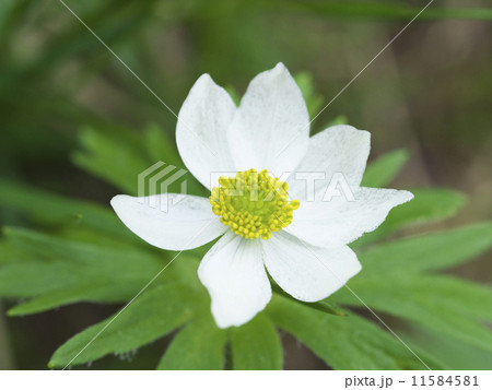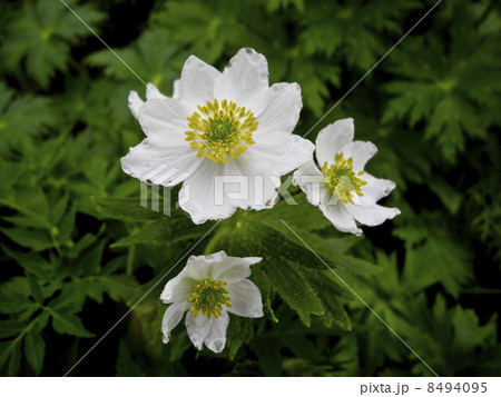 ハクサンイチゲの花と葉の全体/キンポウゲ科・高山植物