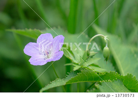信州 美ヶ原の高山植物 ハクサンフウロ(白山風露)の花 薄紫の花が咲く