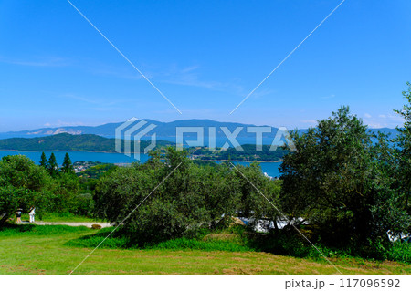 夏の牛窓オリーブ園と瀬戸内海の眺め 岡山県瀬戸内市