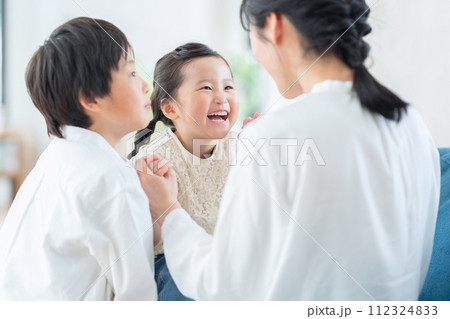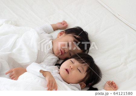 ベッドで眠る子供と母親(育児・子育て・家族・ファミリー)