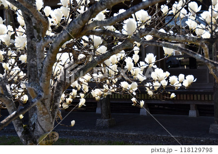 白木蓮の巨木 マグノリア 春の花 白い花 イメージ素材