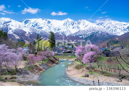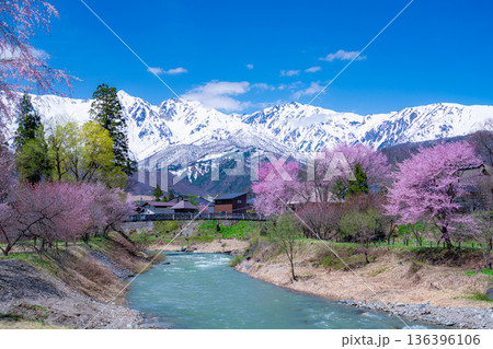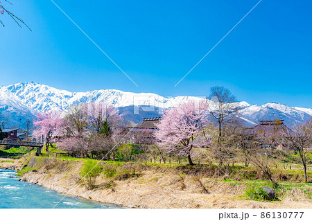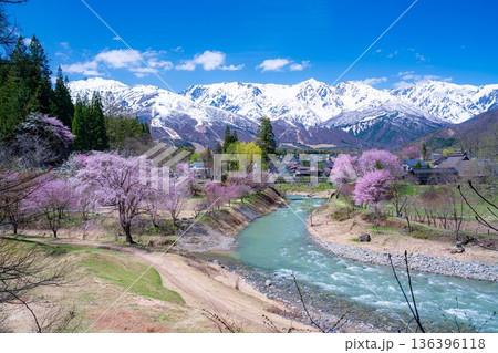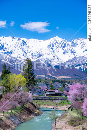 【春素材】白馬村の春 大出の吊橋【長野県】