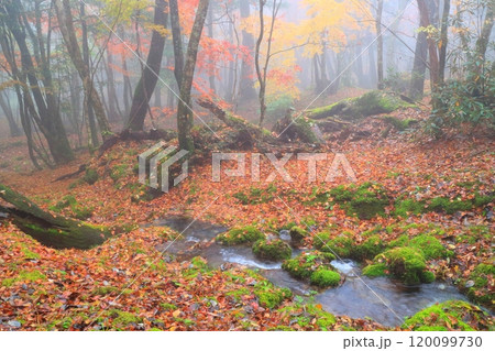 九重連山の東麓、黒岳原生林で湧く男池湧水群の紅葉