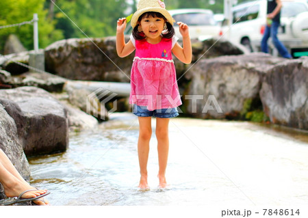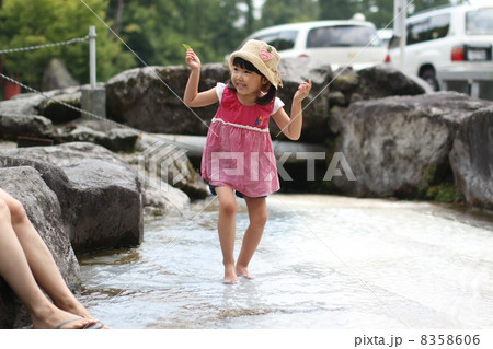 水場で遊ぶ子供 白水鉱泉 大分県由布市庄内町阿蘇野