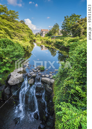 《愛知県》名古屋市守山区白沢渓谷の滝 青い空と白い雲