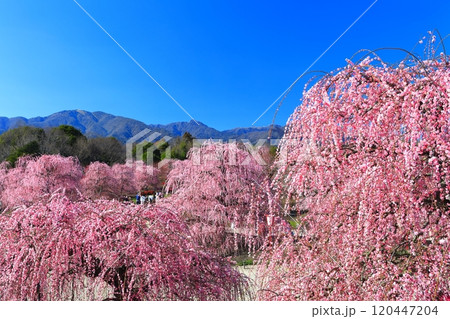 【三重】鈴鹿の森庭園のしだれ梅の風景