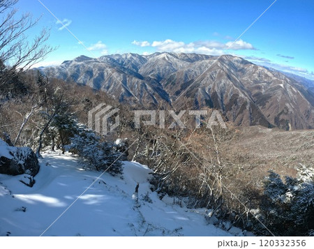 冬季雲取山の前白岩山からの飛竜山と和名倉山