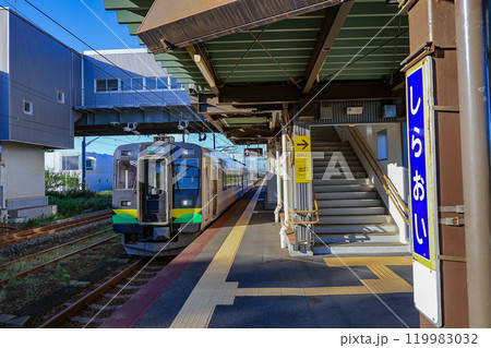 北海道 白老郡白老町 白老駅(ホームと電車)