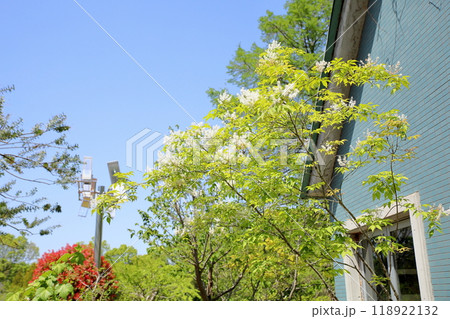 初夏の樹花・ガクアジサイやノリウツギに似るガクウツギの白い装飾花・縦位置