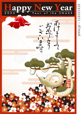 2025年賀状テンプレート「ブラック&レッド」あけおめ 手書き用スペース付