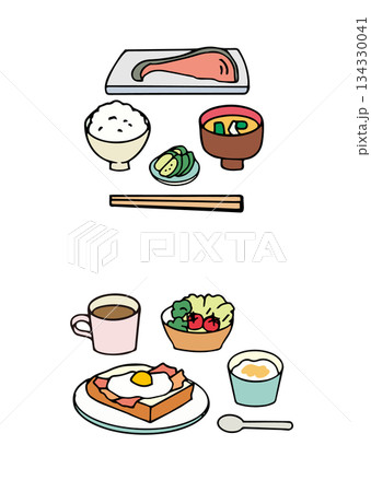 健康的な朝食のイラスト_和食・洋食