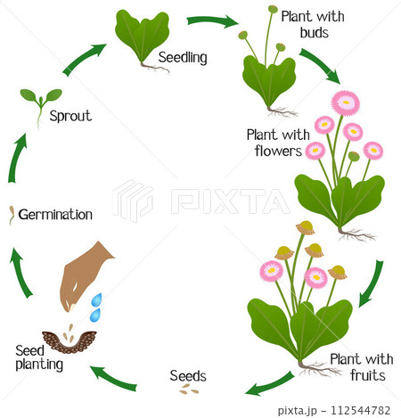 A growth cycle of daisy plant on a white background.