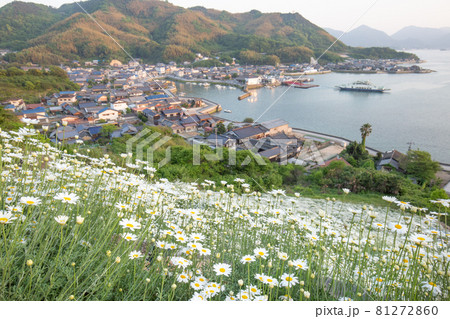 今はフェリーが廃止された重井港を望む因島の除虫菊畑 広島県尾道市