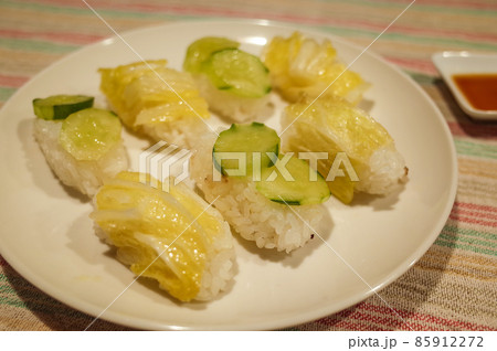 白菜ときゅうりの寿司の画像素材(写真・イラスト) 1ページ目