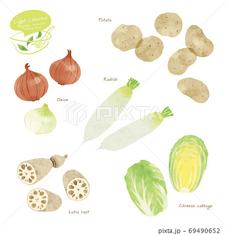 淡色野菜の手描きイラスト