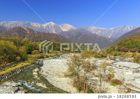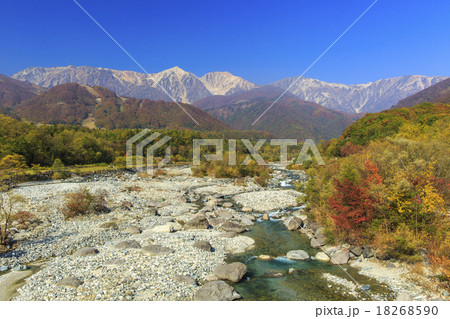信州白馬 白馬大橋から望む秋の白馬三山