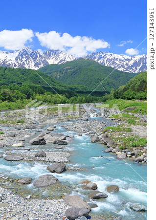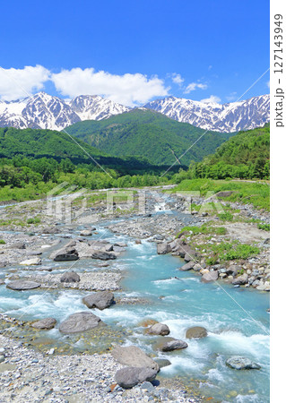 白馬大橋から望む初夏の北アルプス