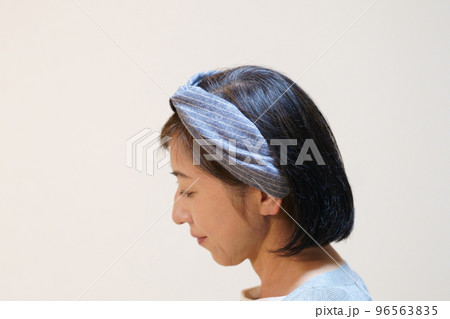 クロスヘアバンドをした中年女性