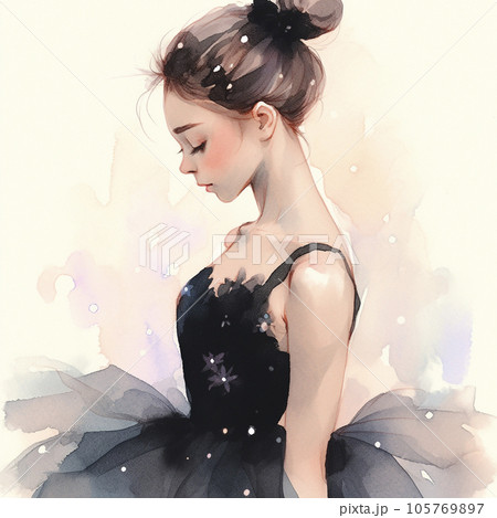 AI-generated content. watercolor ballerina in black dress tutu. Isolated painting sketch on white background.