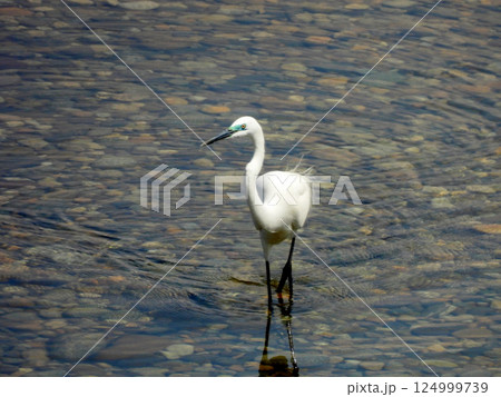 川で餌を探すコサギ