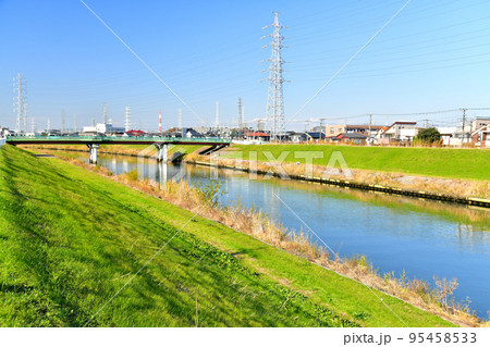 白鷺橋/新芝川周辺を下流側より望む(埼玉県川口市)【2021.11】