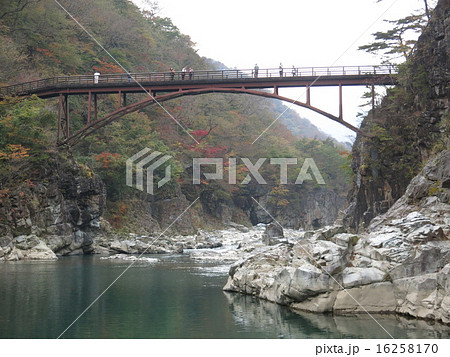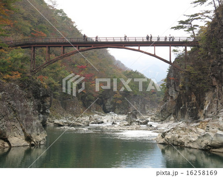 紅葉に彩られた秋の龍王峡(虹見橋)