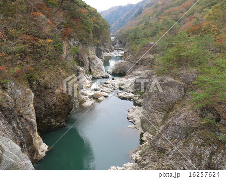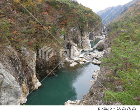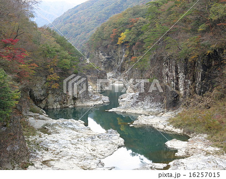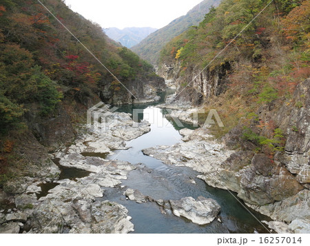 むささび橋から見た紅葉の龍王峡(白龍峡)